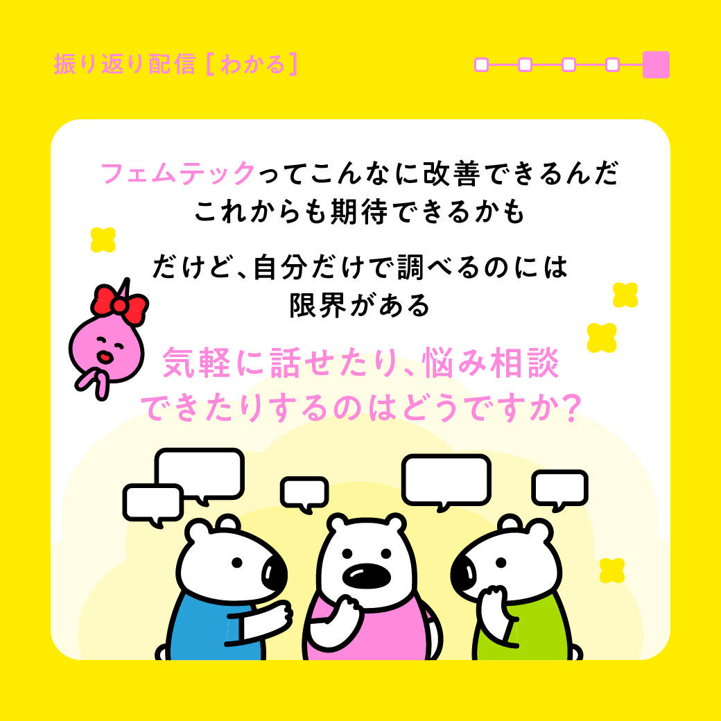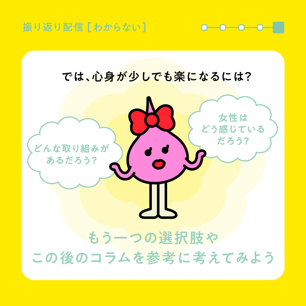 女性の健康に関する基礎知識の講義、デバイスを使った生理痛体験など、グループワークを行います。